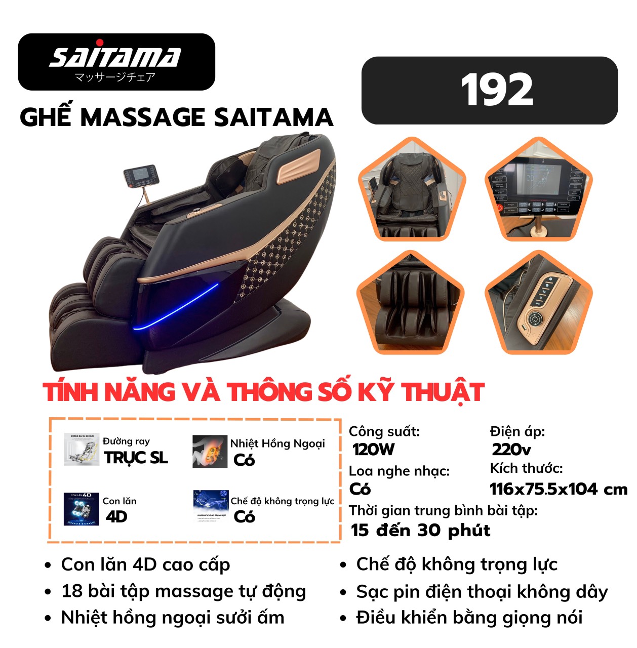 Saitama 192 là thành quả nghiên cứu với hơn một năm của các chuyên gia kỹ thuật hàng đầu Nhật Bản. Là sản phẩm có thể thấu hiểu cơ thể con người. Mang đến cảm giác nâng niu và vỗ về trên từng bộ phận với đa dạng các bài tập tự động chuyên biệt. Chẳng ngoa khi nói Saitama 192 có thể chinh phục bất cứ vị khách hàng nào, dù là khó tính: